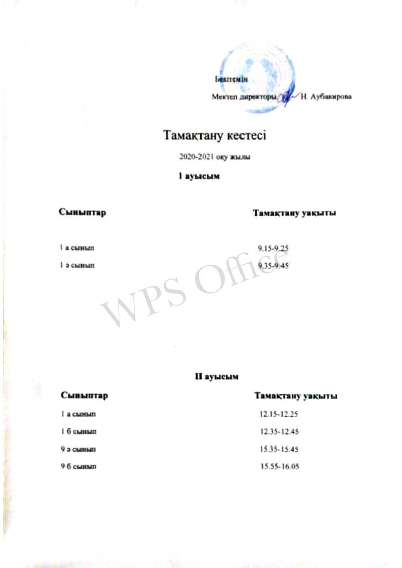 Тамақтану кестесі 2020-2021 жыл! » Мұхтар Әуезов атындағы орта мектеп