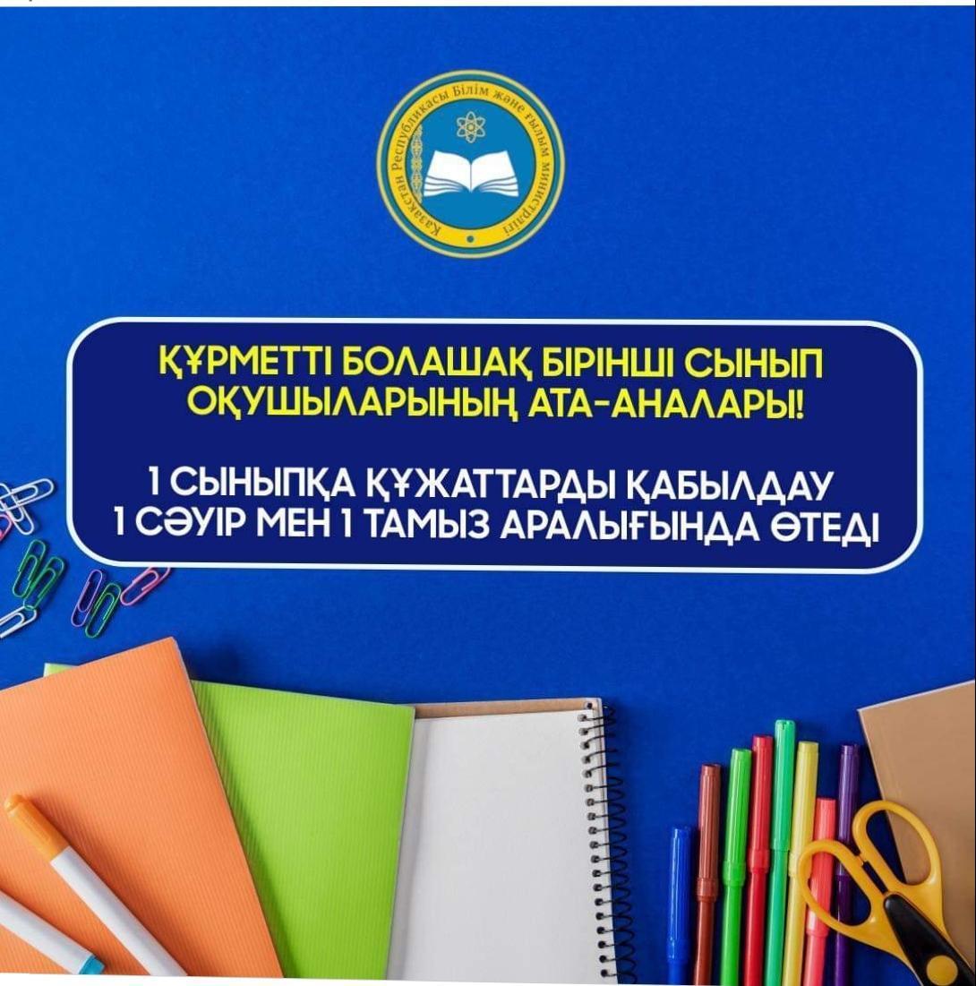 1-сәуірден 1-сыныпқа құжаттар қабылдау басталды.
