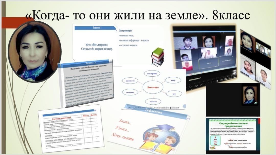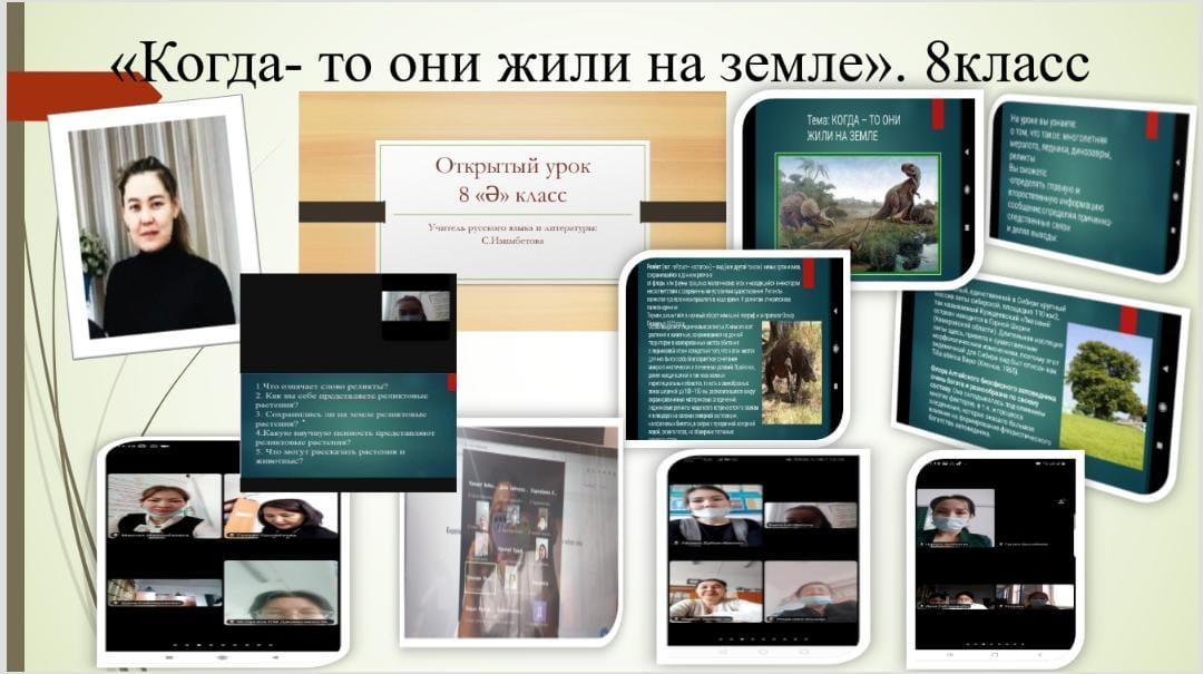 25-қантар күні 8 сыныпта Изимбетова Сайяра Ашимбаевна «Когда то они жили на земле» тақырыпта онлайн түрінде ашық сабақ өткізді. Оқушылар жаңа тақырыпты жақсы түсініп, кері байланыс өте жақсы деңгейде өтті. Жаңа тақырыпқа байланысты әртүрлі тапсырмалар беріліп, сабақты түрлендіріп отырды. Мұғалім сабақта тыңдалым, оқылым, жазылым дағдылары бойынша тапсырмалар орындатты.