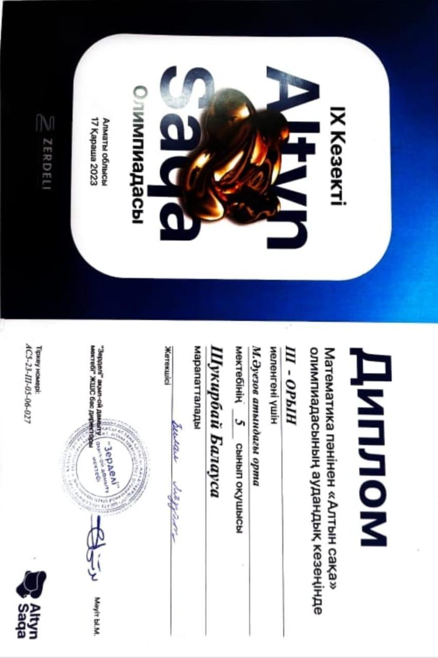 17 қараша 2023 0 1 2 3 4 5 "Алтын сақа" олимпиадасы "Алтын сақа" олимпиадасы 5-6 сыныптарға арналған математика пәніне н аудандық кезеңінің жеңімпаздары. Құттықтаймыз!