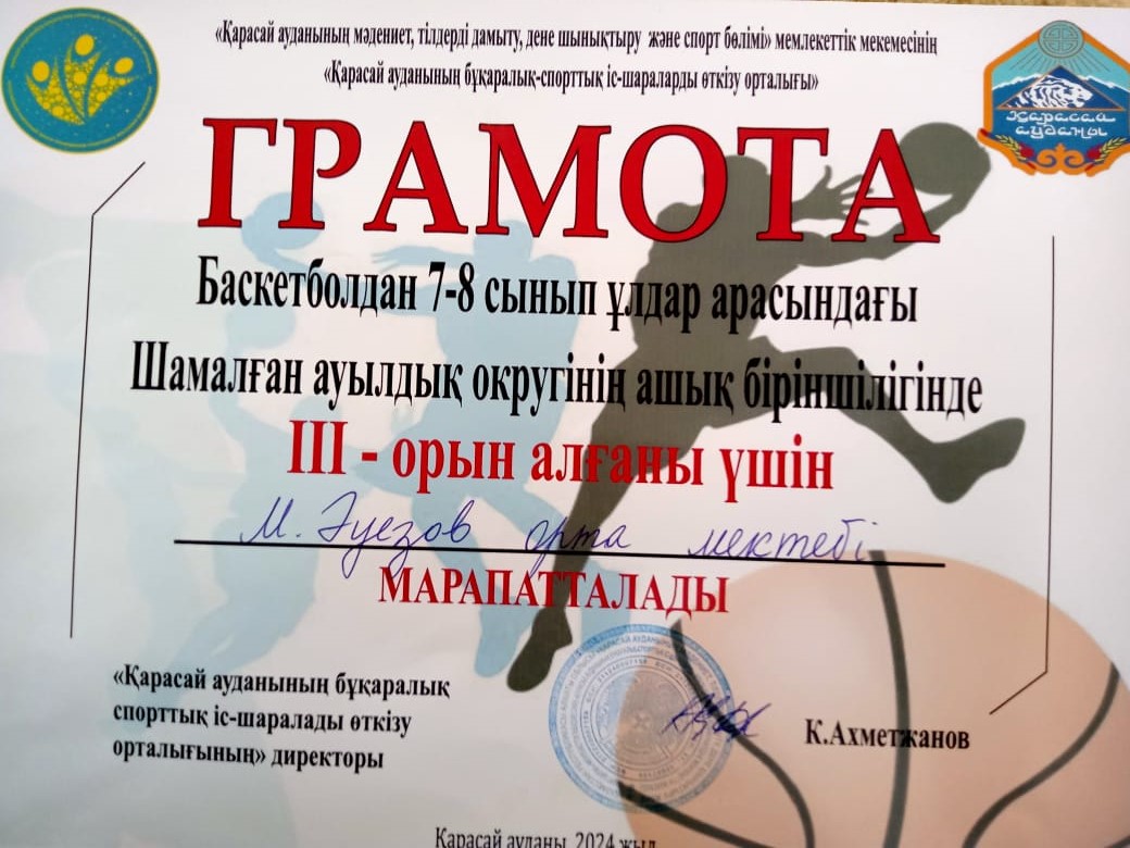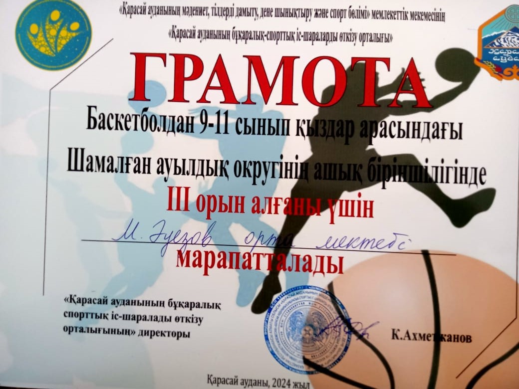 26 қаңтар 2024 0 1 2 3 4 5 Баскетболдан ұлдар және қыздар арасындағы Шамалған ауылдық округінің ашық біріншілігі.