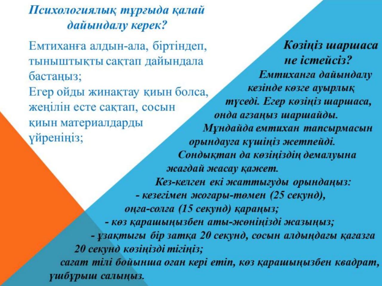 Емтиханға қалай дайындалу керек? » Мұхтар Әуезов атындағы орта мектеп
