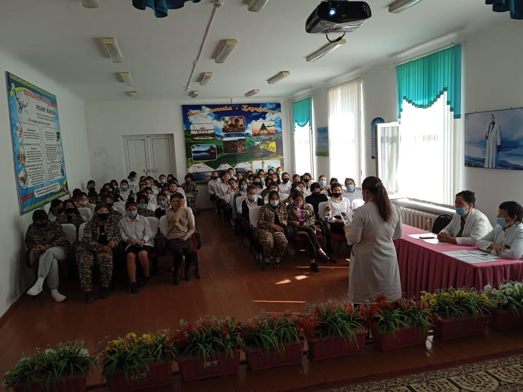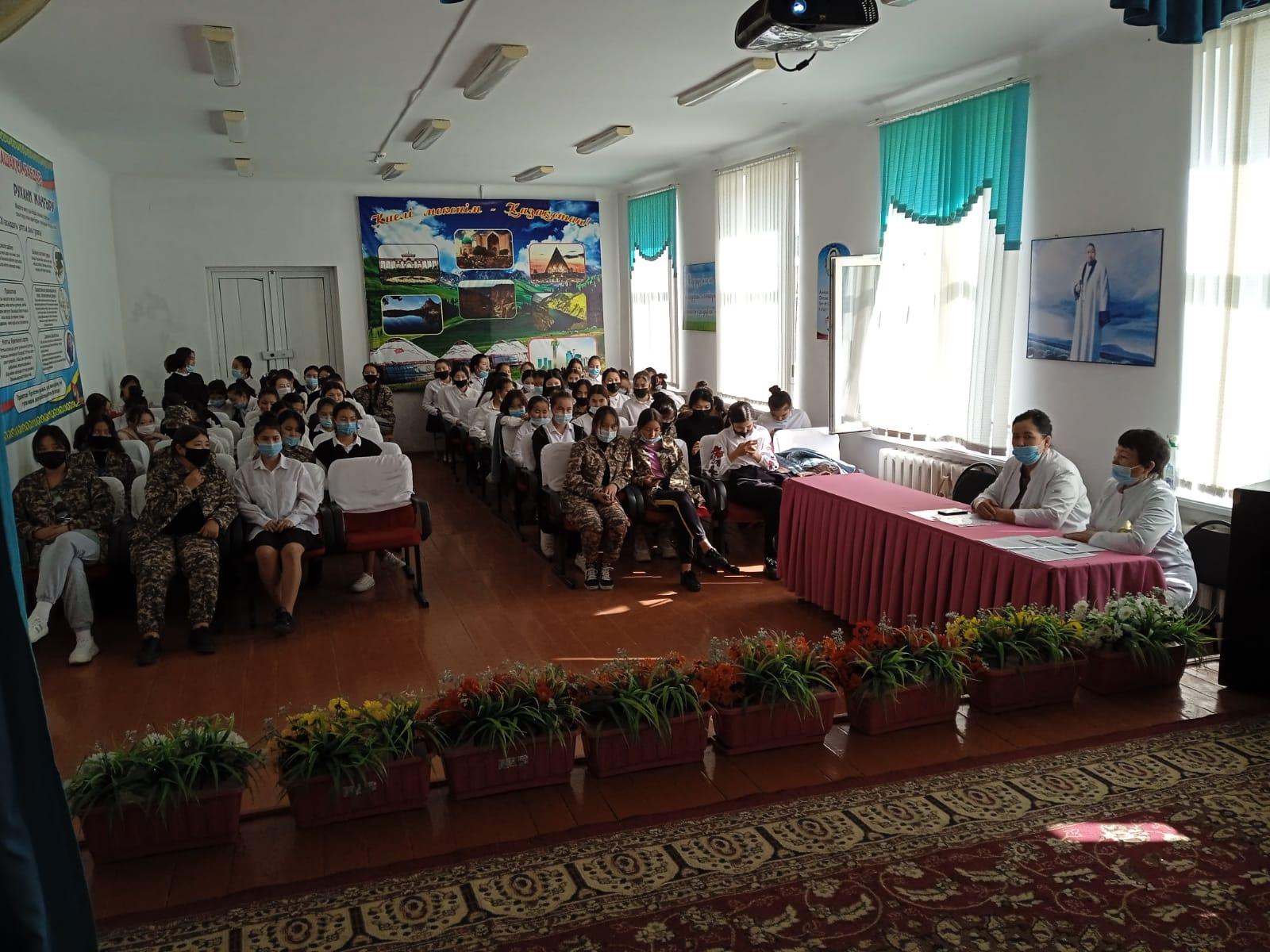 15 қазан күні жоғарғы сынып қыздары арасында ерте жүктіліктің алдын алу бойынша жиналыс өткізілді. Жиналысқа гинеколог врач Ибраева Ляляхан Асылбековна, психолог Шалдыбекова Рая Азанбековна, акушер Алимбетова Наргиз Танирбергеновна қатысты