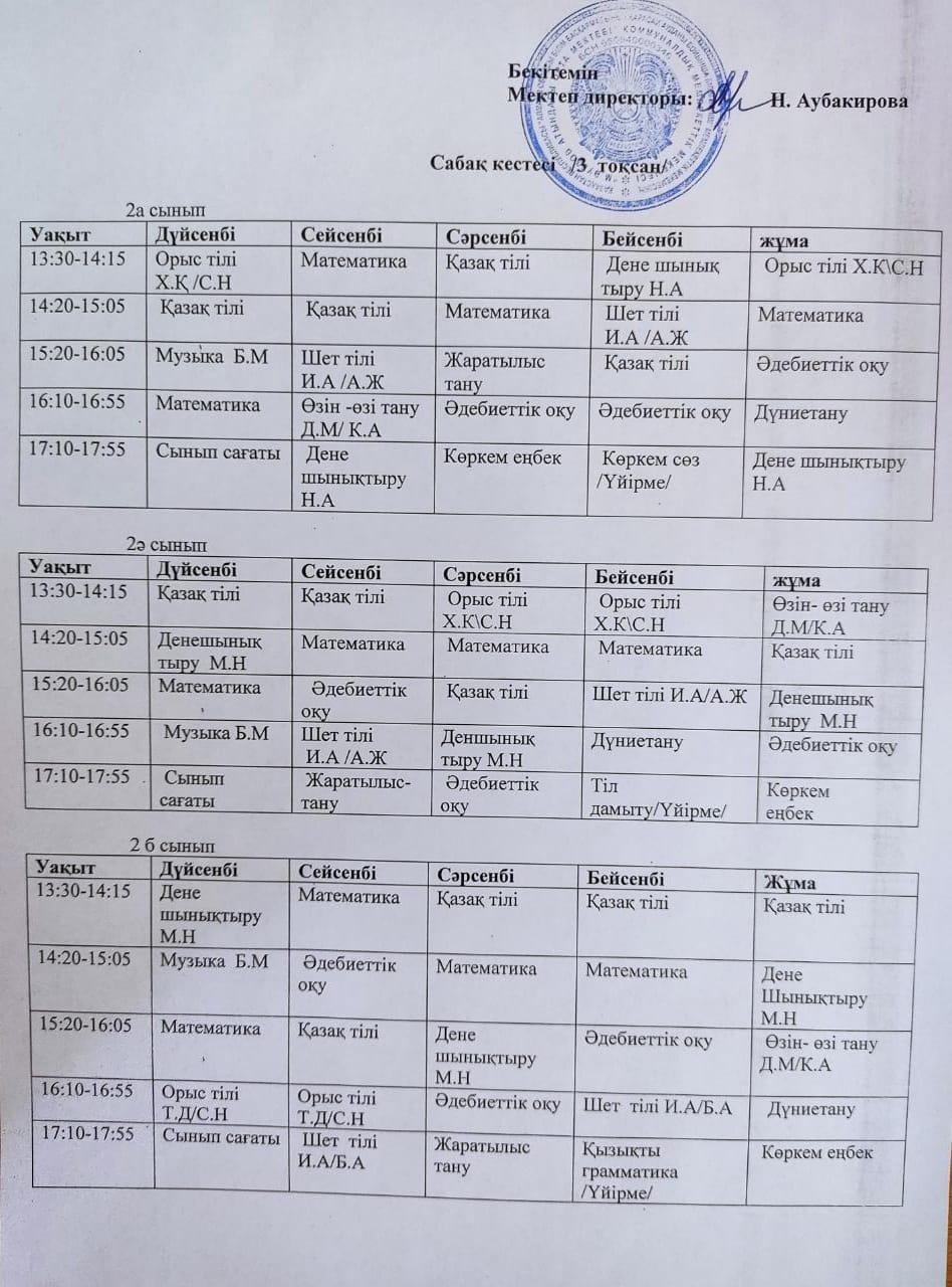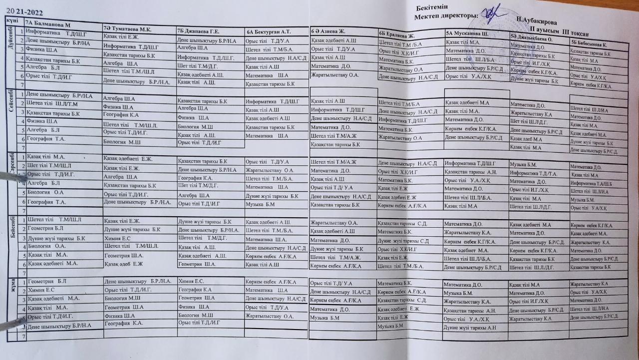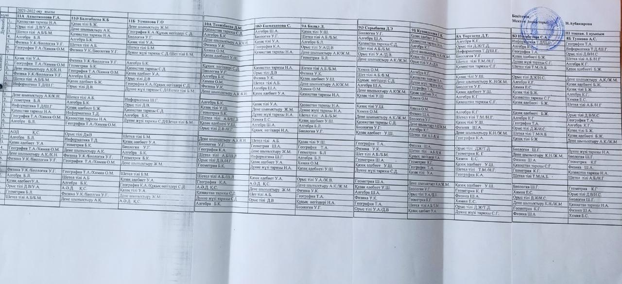 2021-2022 Сабақ кестесі » Мұхтар Әуезов атындағы орта мектеп