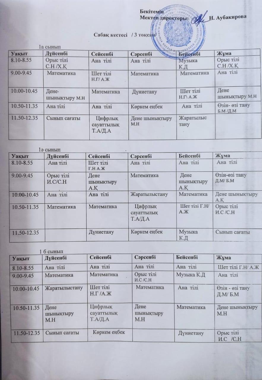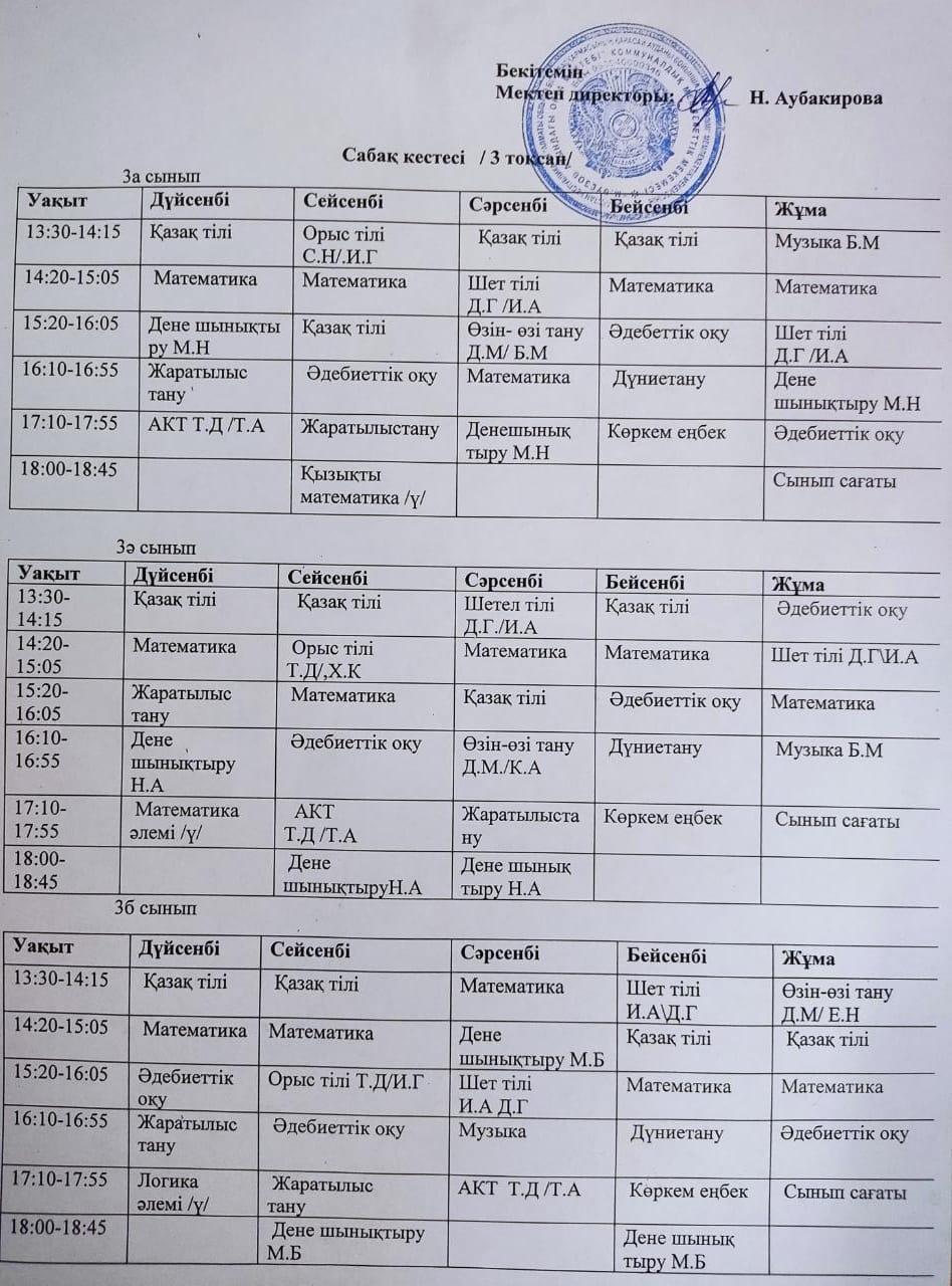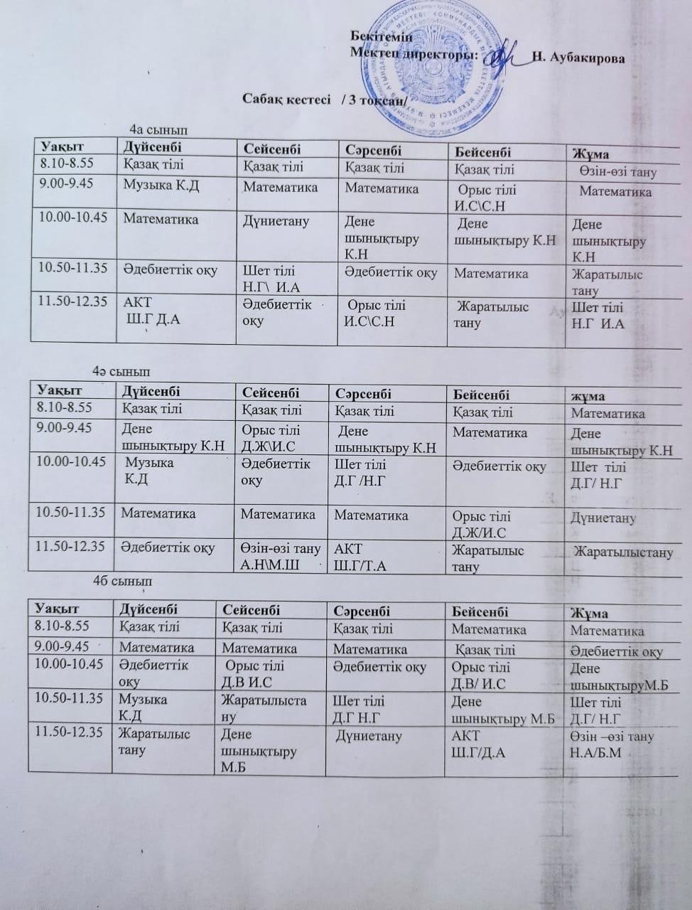 2021-2022 Сабақ кестесі » Мұхтар Әуезов атындағы орта мектеп