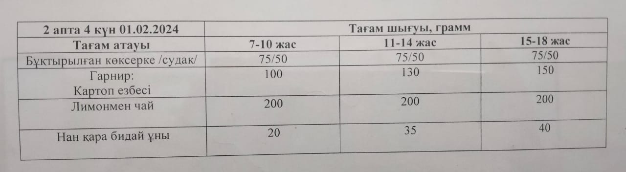 Ыстық тамақ. 01.02.2024 » Мұхтар Әуезов атындағы орта мектеп