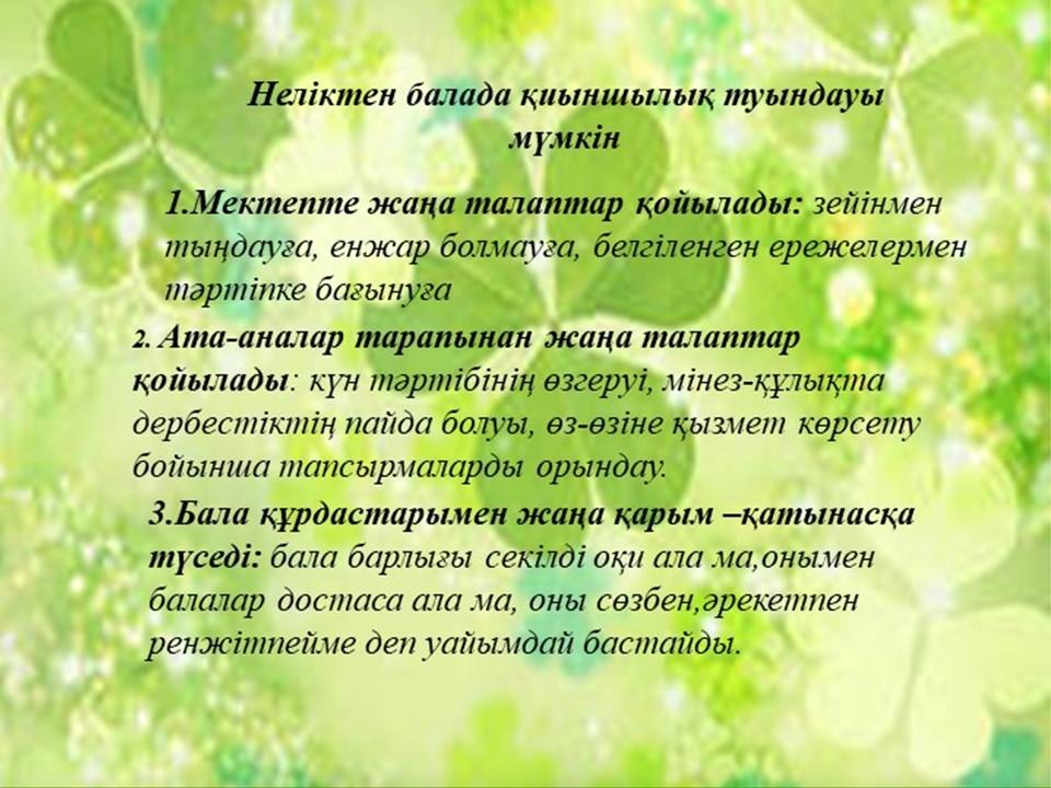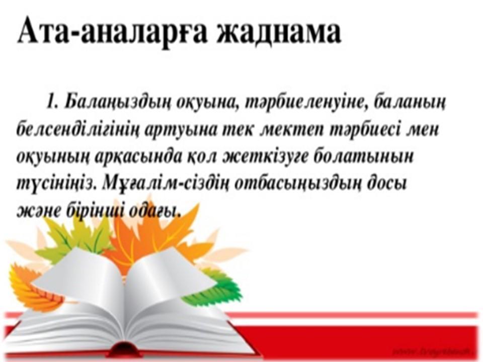 "М.Әуезов атындағы орта мектебі» коммуналдық мемлекеттік мекемесіндегі педагог-психологының 2023-2024 оқу жылына арналған жұмыс жоспарына сәйкес А. Набиева мен М. Джамалиева "Өз балаңа үлгі бол!" тақырыбында 1-сынып ата-аналарына жадынамалар таратты. Осы тақырыпқа байланысты баланың мектепке келуі - ол оның өміріндегі өтпелі кезең, оқудың басталуы оның күнделікті тіршілігіне өзгеріс енгізетінін, бастауыш білім беру бұл - ересектер әлеміне, саналы өмірге бастау және баланың кім және қандай болып өсетіні оның жетістіктеріне байланысты екендігі, неліктен балада қиындықтар туындауы мүмкін, мектепке дейінгі оқушыларға тән балалық, бейқамдық, ойынға берілу көптеген талаптар, міндеттер мен шектеулері бар өмірмен алмасады, осы кезде ата-ана баланың сәтсіздіктеріне шыдамдылық танытып, талпыныстарына қолдау көрсетуі қажет екендігі жайында және мектепте алғаш білім алуына байланысты бала өміріндегі өзгерістер кезінде ата-аналар естен шығармауы тиіс екендігі жайында кеңестер берілді.