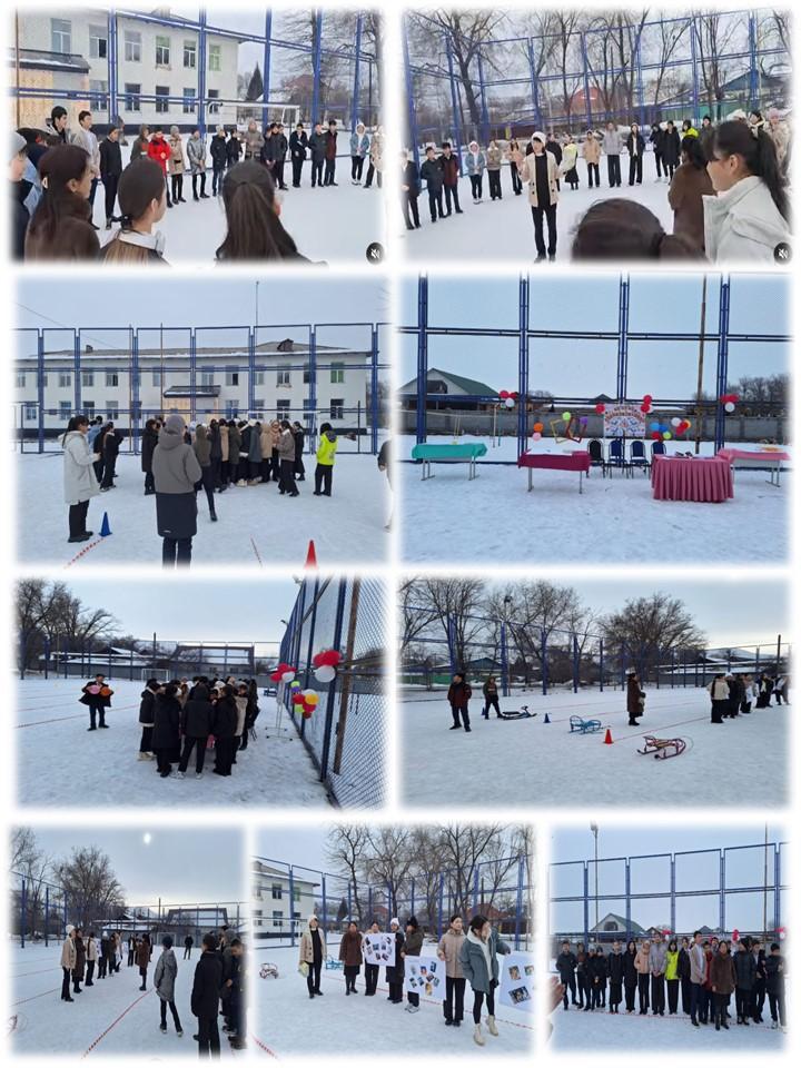 М.Әуезов атындағы орта мектебінде 2024 жылдың 8 ақпан күні «ДосболLIKE: достық қолын ұсыныңыз» акциясы аясында оқушылардың жағымды қарым-қатынастары мен эмоционалдық әл-ауқатын дамыту мақсатында 7 «А» және 7 «Ә» сыныптары арасында достық, қауіпсіз кеңістік құру үшін ынтымақтастық арқылы позитивті қарым-қатынастың ең тиімді жолдарын қолдана отырып, қыстық ойын түрлері ұйымдастырылды. Акцияға қатысу барысында оқушылардың достық қарым-қатынастары нығая түсті.