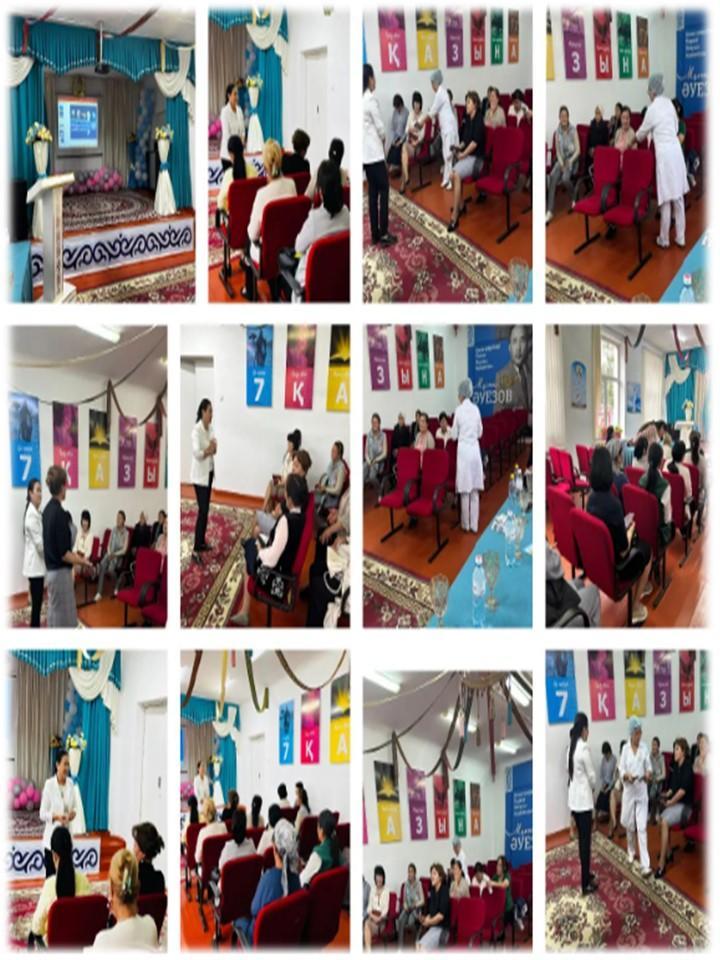 М.Әуезов атындағы орта мектебінде 10.10.2024 ж. күні мектеп медбикесі А.Акимжанова, мектеп оқушыларына «ЖРВИ - тұмаудың алдын алу», «Психикалық денсаулықты сақтау» атты тақырыптарда аурудың алдын алу мақсатында түсіндіру жұмыстарын жүргізді және мектеп психологтері А.Набиева, М. Джамалиевамен бірге оқушылар арасында көңілді ойын-жаттығулар ұйымдастырды. Оқушыларға психикалық денсаулықты нығайтуға кеңестер айтып: Психикалық денсаулық бұл- адамның өз мүмкіндіктерін іске асырып, күнделікті өмірлік қиындықтарға қарсы тұра білу, өнімді еңбек етіп, өз ортасына үлесін қоса алатын әл-ауқатының жағдайы екендігіне назар аудартты.