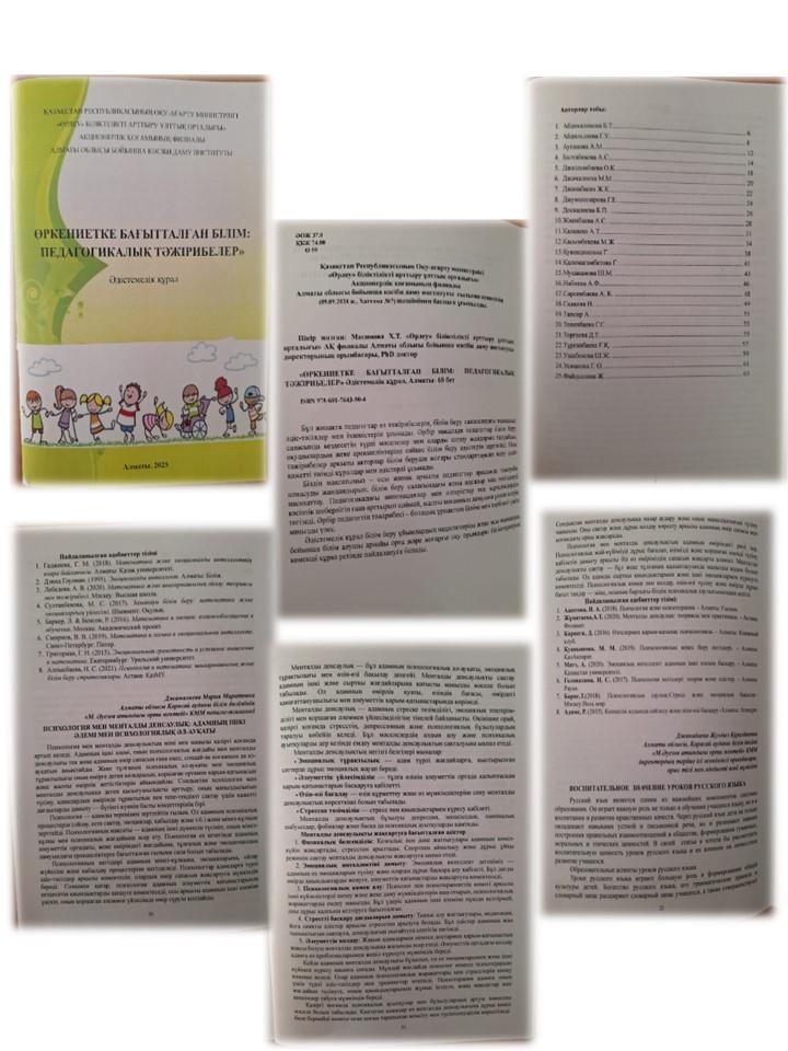 2025 жылдың 25 қаңтар күні «Өрлеу» біліктілікті арттыру ұлттық орталығы» акционерлік қоғамының филиалы Алматы облысы бойынша кәсіби даму институтының «Өркениетке бағытталған білім: педагогикалық тәжірибелер» әдістемелік құралында М. Әуезов атындағы орта мектебінің педагог-психологі Джамалиева Мария Маратовнаның «Психология мен менталды денсаулық: Адамның ішкі әлемі мен психологиялық әл-ауқаты» тақырыбында мақаласы жарық көрді.